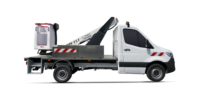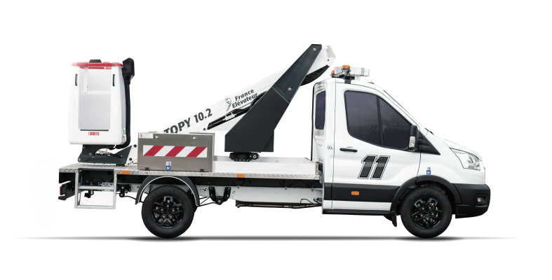 Última generación de esta gama emblemática, el modelo TOPY 11 sobre MERCEDES SPRINTER permite una optimización del trabajo a través de una conocida simplicidad de utilización sobre todo tipo de terrenos y para múltiples actividades.